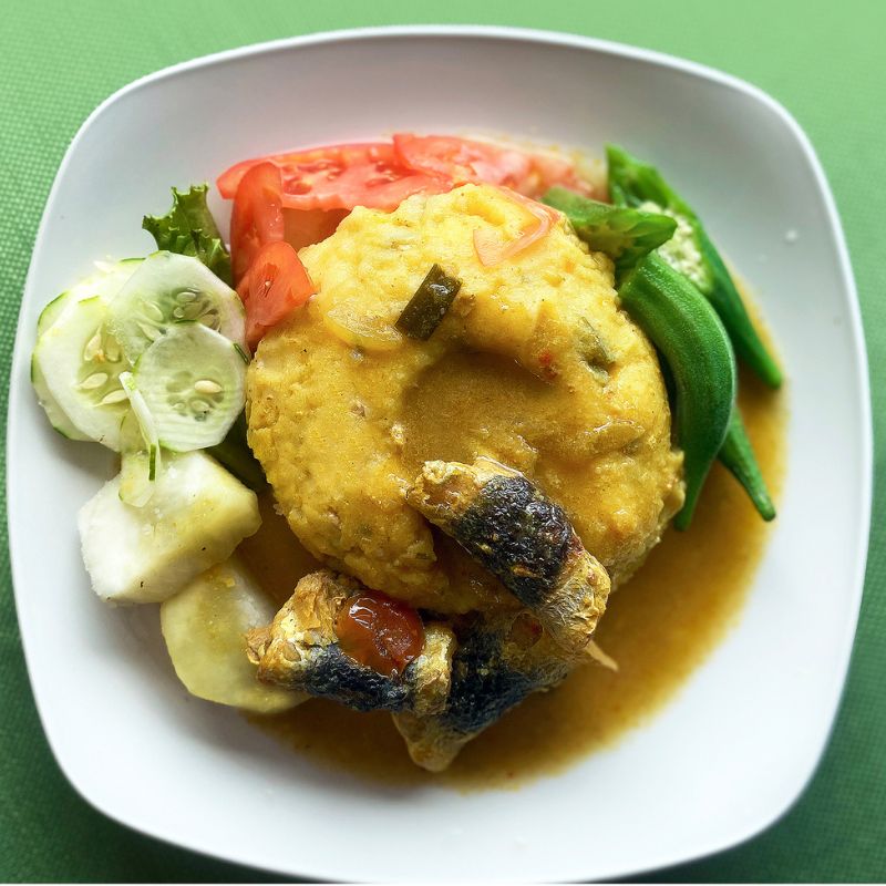 The national dish, cou cou and flying fish, features steamed flying fish paired with a cornmeal-and-okra cake, topped with an herbed sauce. Despite dwindling local fish populations, the dish remains popular and continues to be served in restaurants across Barbados.