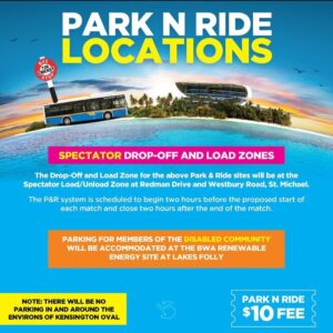 🚫There will be NO parking in and around the environs of Kensington Oval. 🚫