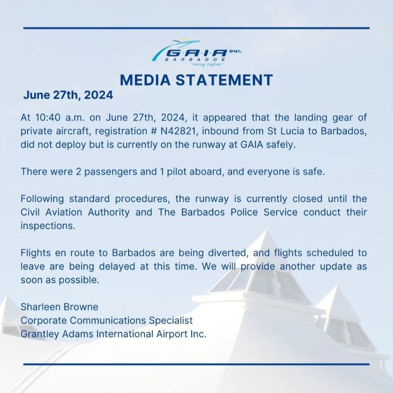 Flights to GAIA have been diverted to Trinidad and Tobago as officials manage the situation.